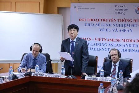 Phát biểu tại buổi tọa đàm, đồng chí Hồ Quang Lợi, Phó Chủ tịch Thường trực Hội Nhà báo Việt Nam nhấn mạnh, trong bối cảnh Asean và EU đều đang đối mặt với những thách thức chung, báo chí truyền thông luôn đóng vai trò quan trọng trong việc giải quyết thách thức ở cấp quốc gia, khu vực và toàn cầu. Vì thế, những trao đổi trong cuộc đối thoại truyền thông Đức-Việt này sẽ giúp các nhà báo hai nước tìm hiểu cách thức đưa tin hiệu quả về Asean và EU; qua đó thúc đẩy các hoạt động giao lưu của các nhà báo, tạo tiền đề vững chắc cho sự kết nối 2 khối. Hội Nhà báo Việt Nam tin rằng, với sự nhiệt tình của các nhà báo tham gia, cuộc đối thoại sẽ đạt được kết quả tốt nhất, góp phần nâng cao hiểu biết về EU và Asean, thúc đẩy mạnh mẽ quá trình xây dựng lòng tin, thấu hiểu lẫn nhau để củng cố các mối quan hệ song phương.